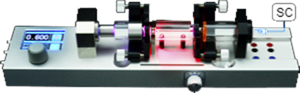 Para las diferentes tareas de medición se pueden acoplar al sistema diferentes sensores como una pantalla blanca ordinaria, un fotodiodo o una cámara CCD (CC) con ranuras para diferentes filtros (FB).