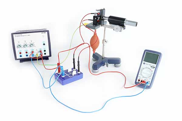 El montaje experimental PHYWE-Millikan permite determinar con precisión la carga elemental mediante el movimiento de gotas de aceite cargadas en un campo eléctrico. Confirma la cuantización de la carga, ya que sólo existe en múltiplos enteros de la carga elemental.